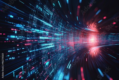 Abstract digital technology background. Innovation high-tech future network connection speed movement AI metaverse communication big data data transfer Network cyber light trails