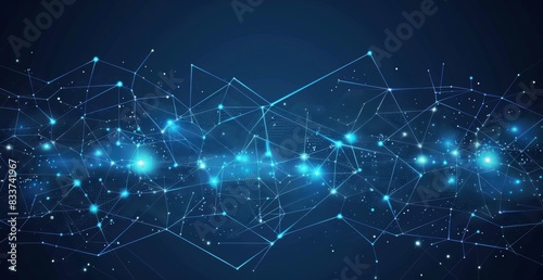 Abstract Digital Technology Background with Glowing Connections and Stars on Dark Blue Background. AI Digital Technology Concept with Simple Lines