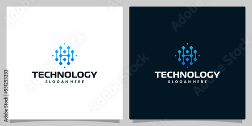 Abstract Digital technology logo design template with initial letter H graphic design illustration. Symbol for tech, internet, system, Artificial Intelligence and computer.
