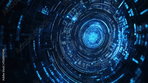 Abstract digital tunnel, glowing blue lines