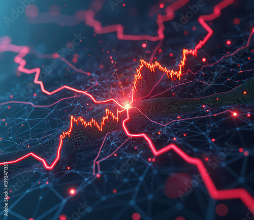 Abstract digital visualization of data trends and networks in vibrant colors.