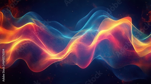Abstract Digital Wave Pattern with Red, Orange, and Blue Hues Against a Dark Background
