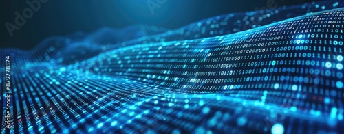 Abstract digital wave with binary code. Big Data concept. data flow, visualization, analysis, cyber security, programming, AI, machine learning