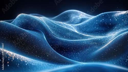 Abstract digital waves of shimmering blue and gold