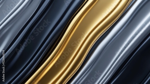 Abstract Draped Metallic Fabrics Gold Silver Black