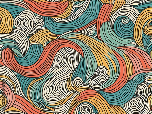 Abstract drawing doodle seamless pattern. Creative squiggle color lines.