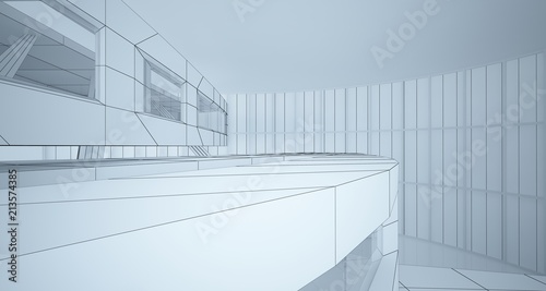 Abstract drawing white parametric interior. Polygon black drawing. 3D illustration and rendering.