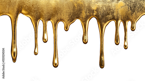 Abstract dripping gold paint with glossy finish isolated on transparent background