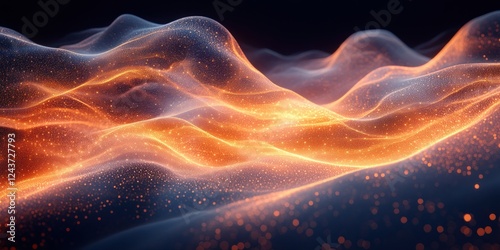 Abstract Dynamic Flowing Dots Wave Pattern Light on Black Background