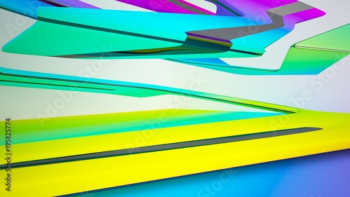 Abstract dynamic interior with black and colored gradient smooth objects. 3D illustration and rendering
