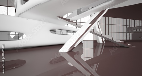 Abstract dynamic interior with brown smooth objects. 3D illustration and rendering