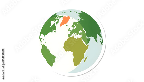 Abstract earth globe with continents and oceans. World or planet icon. Colored flat illustration isolated on white background, sticker style