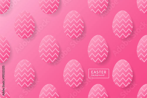 Abstract easter pink background with black frame for text. Creative 3D eggs with pattern. Vector illustration