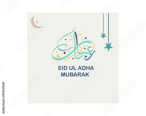 Abstract Eid Mubarak Al Fitr Islamic geometric mosaic Greeting includes Arabic lanterns, Mosque doorway entrance, Mosque architecture design banner or template