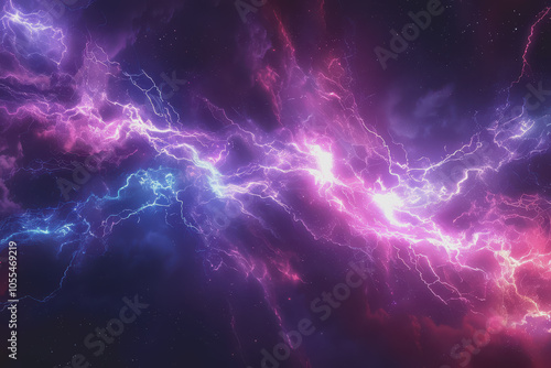 Abstract electric background with vibrant purple and blue lightning.