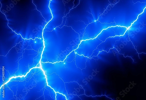 Abstract electric blue lightning bolt, fractal energy design, wave, bright