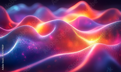abstract element showcasing bright, wavy shapes in holographic neon colors