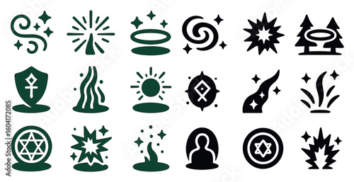 Abstract elements silhouette icons set – flat, outline, mystical and nature symbols