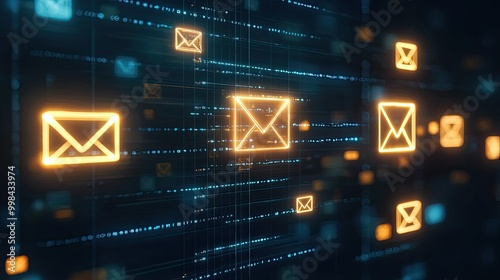 Abstract email marketing icons with a focus on automation and spam filtering technology for optimized campaigns