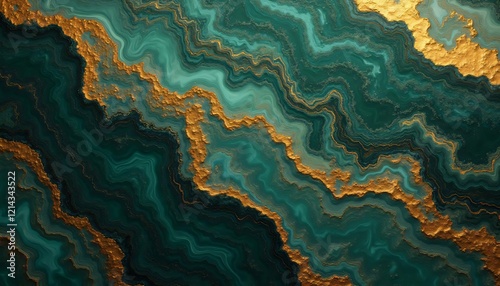 Abstract Emerald and Gold Marble Texture: A Luxurious Digital Art