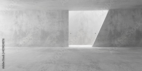 Abstract empty, modern concrete room with indirect lighting with diagonal wall and rough floor - industrial interior background template