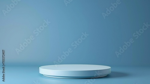 Abstract empty white podium on blue background. Mock up stand for product presentation. Minimal concept. Advertising template