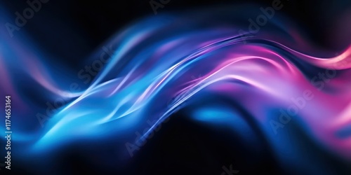 Abstract energy waves, flowing light streams, cosmic art, neon blue and purple colors, glowing ethereal ribbons, dark space background, digital art, vibrant luminescence, futuristic design, smooth cur