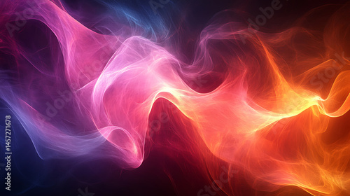 Abstract energy waves of pink orange and blue hues flowing smoothly in a gradient presentation providing dynamic and vibrant visuals emitting a soft and mesmerizing light effect
