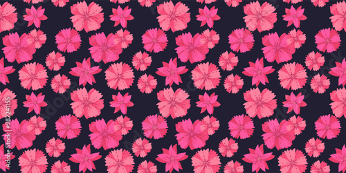 Abstract exotic seamless pink floral pattern. Vector Hand drawn stylized daisy flowers print. Contemporary ornament for designs, fabric, textiles