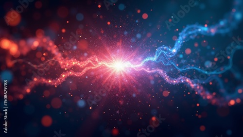 Abstract explosion of colorful light trails & geometric particles symbolizing data/computing. Energetic, neon, cinematic, high-resolution., ultra detailed, 8k resolution, HDR, professional