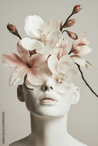 Abstract Feminine Sculpture Blended With Blooming Flowers