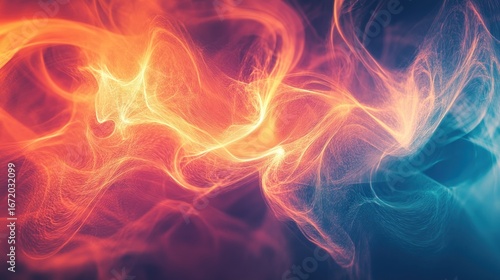 Abstract fiery and icy swirls, dynamic energy flow, vibrant color blend.
