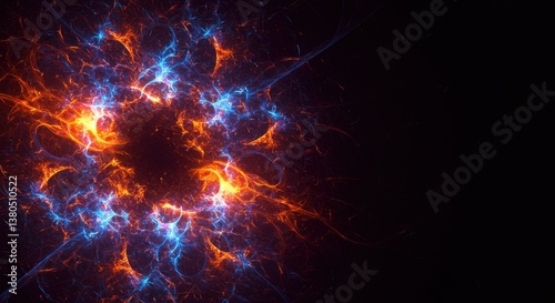 Abstract Fiery Nebula Cosmic Energy Explosion in Deep Space, Digital Art