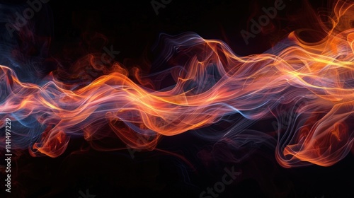 Abstract Fiery Smoke Waves on Black Background
