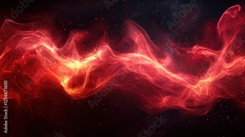 Abstract fiery wave of red and orange smoke swirling against a dark background, creating a dynamic visual