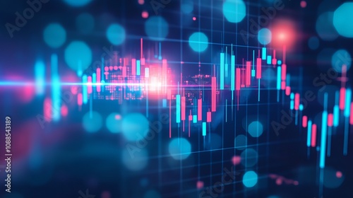Abstract Financial Candlestick Graph Chart with Business Data Visualization