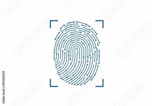 Abstract Fingerprint Circuit Board Design, Blue Lines and Dots on White
