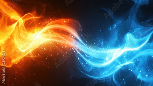 Abstract fire and ice swirls with sparks.