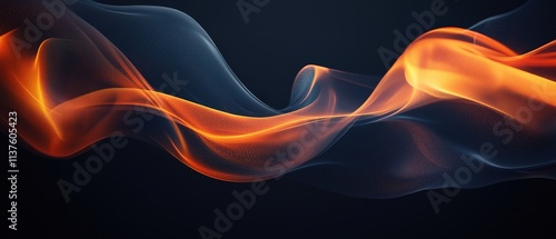 Abstract Flame Flow with Black Background, Bright Orange and Red Flames Illuminating Edges, Wave Patterns of Fire and Smoke