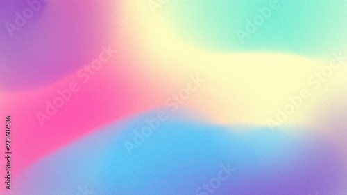 Abstract flat style Vintage glowing neon soft blur defocused noise grainy freeform gradient background French violet, Rose bonbon, Cream, Turquoise blue mid century modern colors copy space text area