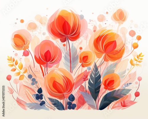 abstract flora flat design side view plant forms water color Triadic Color Scheme