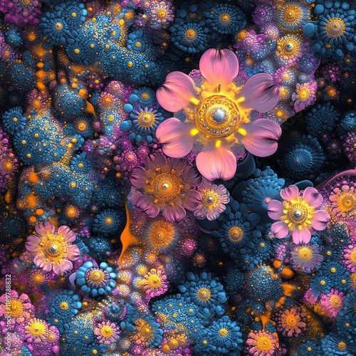 Abstract Floral Design with Vibrant Colors and Intricate Patterns