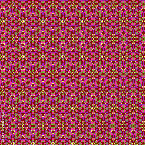 Abstract floral geometric mosaic tile fabric pattern Vivid hot pink, purple, yellow, green colors
