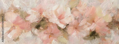 Abstract Floral Painting in Soft Pink and Neutral Tones.