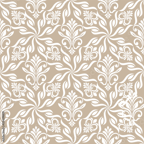 Abstract floral seamless pattern. Biege and white. Vector background.