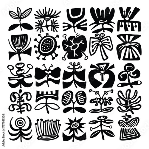 Abstract Floral Vector Set Hand-Drawn Botanical Folk Art Elements
