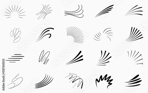 Abstract Flow and Energy Icon Set – Silhouettes of Waves, Flames, and Dynamic Line Patterns