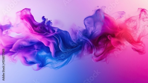 Abstract Flow of Blue and Pink Ink Against a Gradient Background