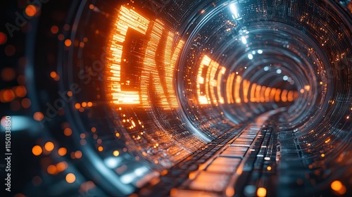 Abstract flow of light energy or data as future digital time travel in space, graphic wallpaper art, tunnel of flare lines, glass as fast sci-fi stream of creative information