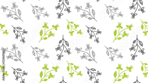 Abstract flower seamless pattern with leaves and dots. Doodle cute black and white background. Sweet summer monochrome simple print.